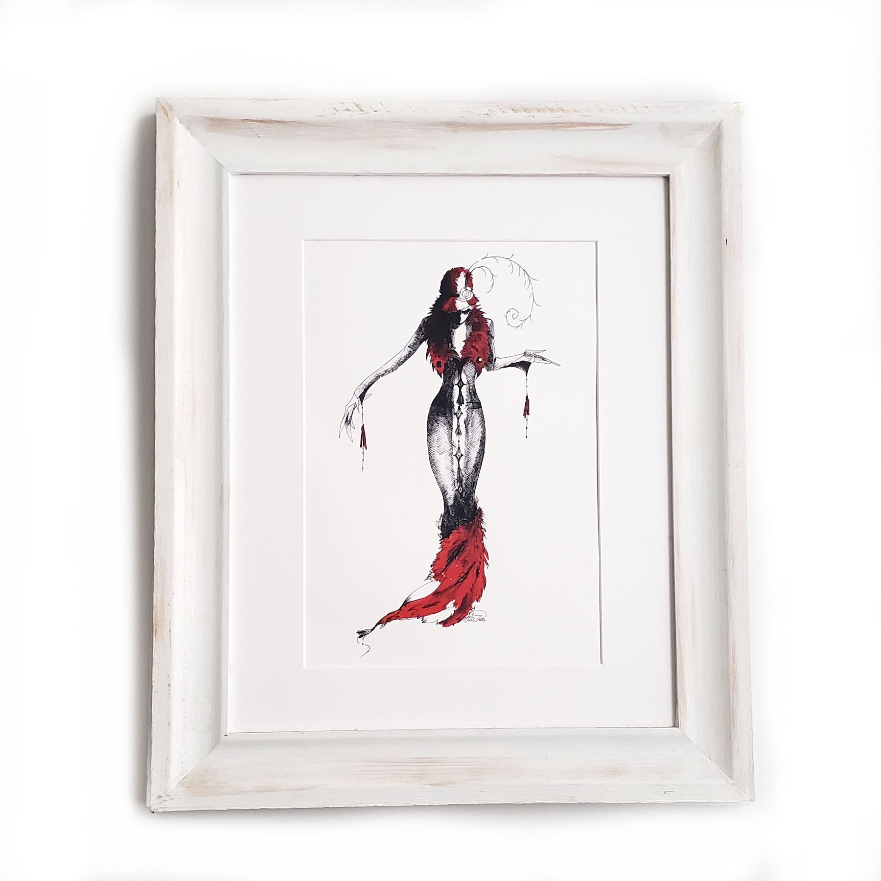 Fashion Illustration Wall Art In Classic Red & Black.